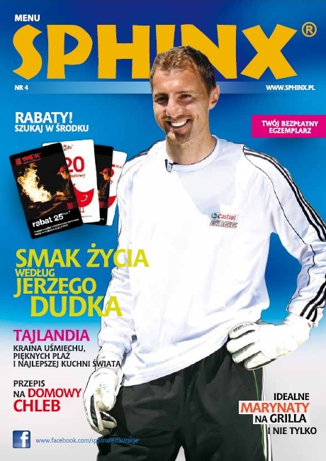 W restauracjach Sphinx, zarządzanych przez Sfinks Polska, pojawiło się nowe lifestylowe Sphinx Menu. Na jego okładce gości znany polski bramkarz, Jerzy Dudek, który w wywiadzie opowiada m.in. o kulinarnych fascynacjach, kadrze piłkarskiej i radzeniu sobie z presją. W najnowszym Sphinx Menu, dostępnym we wszystkich lokalach sieci w Polsce, nie brakuje również inspirujących przepisów, a także wspomnień z egzotycznych wycieczek.